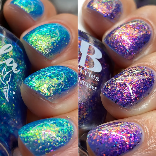Welcome! Hope you're enjoying the cinnamon buns and vodka. Did you know that years ago Jen & Berries and Royla Lee independently made polishes named "I'm not a condom"? Neither did we at first, but when we found out, our mutual love for Schitt's Creek demanded more Schitty polish! The Schitty Polish box is a monthly duo inspired by the legendary show. Sometimes there'll be a guest maker, occasionally it'll be an advent but you can expect long names and that they'll be Simply the best.