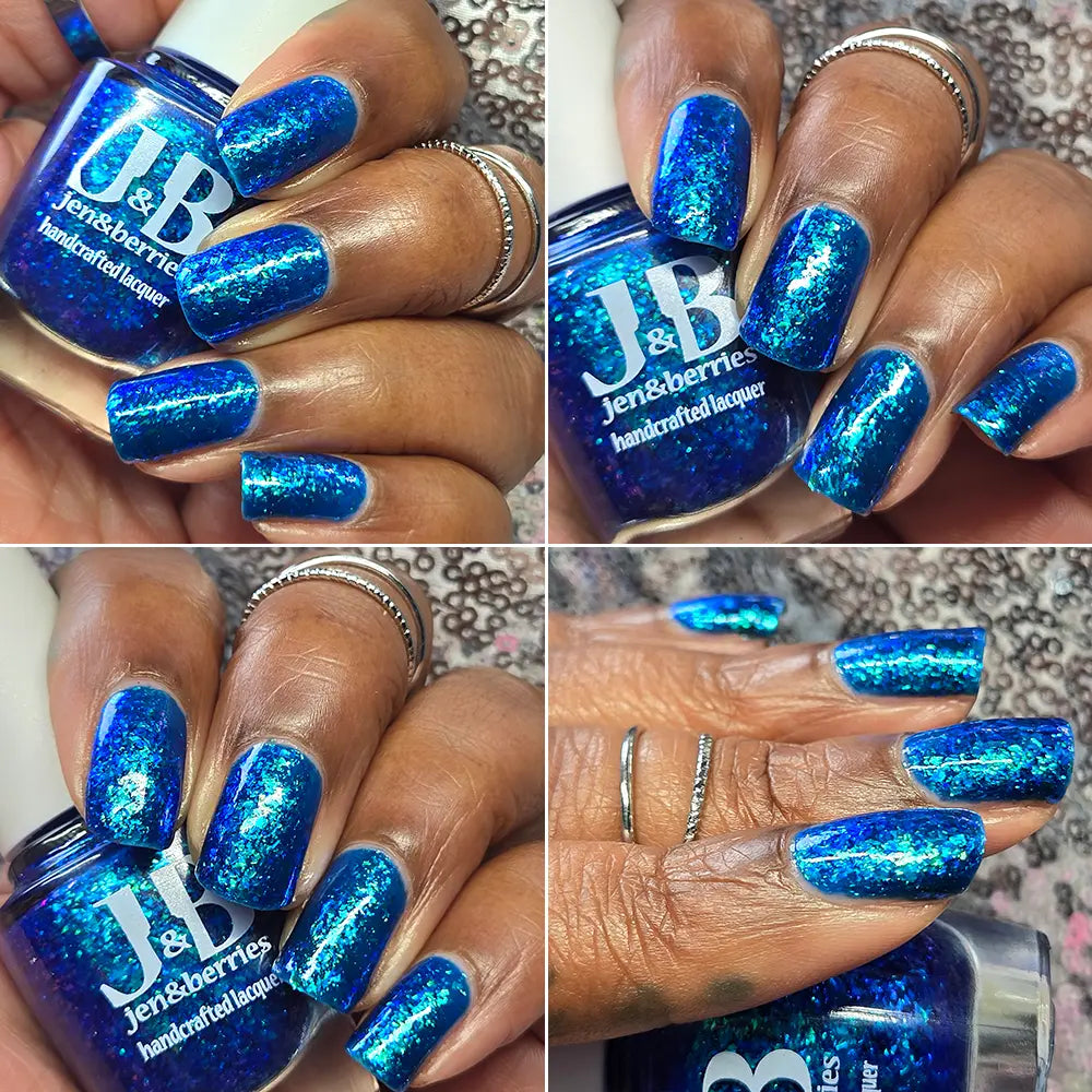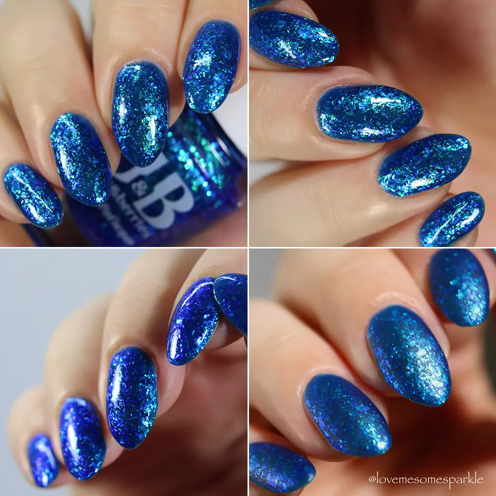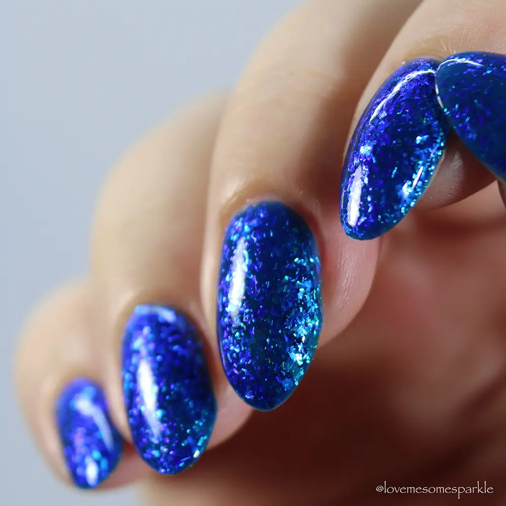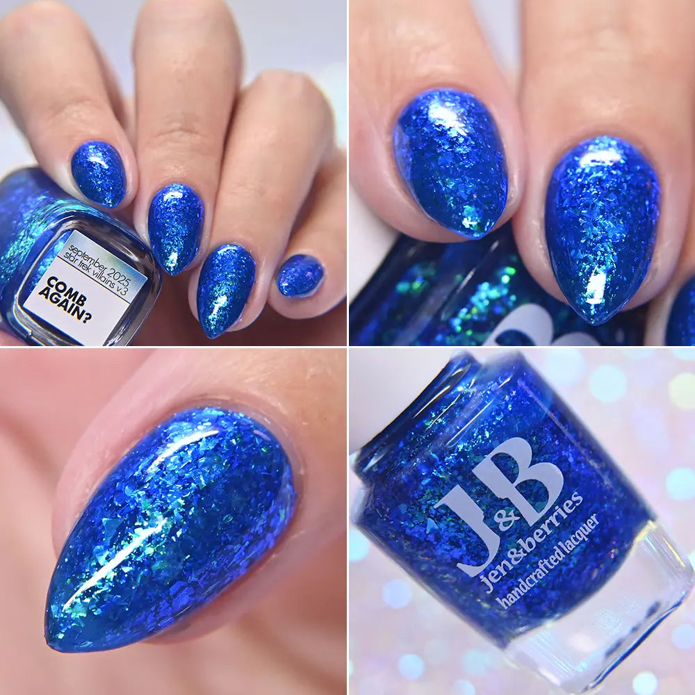 Comb Again?: Inspired by Weyoun, with the polish name as a nod to the actor himself, this polish has a bold, blue, jelly base that's loaded with blue/violet and green/blue/violet shifting iridescent flakes.