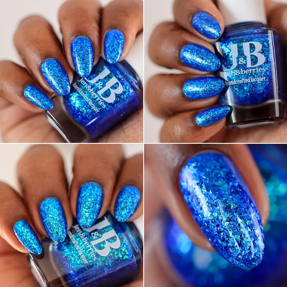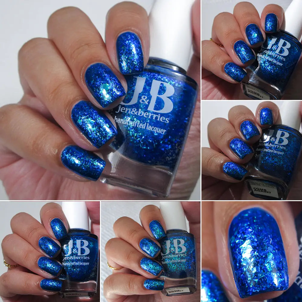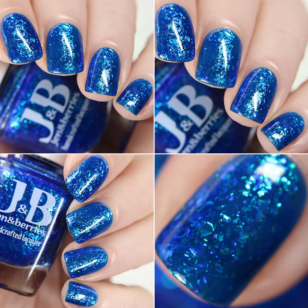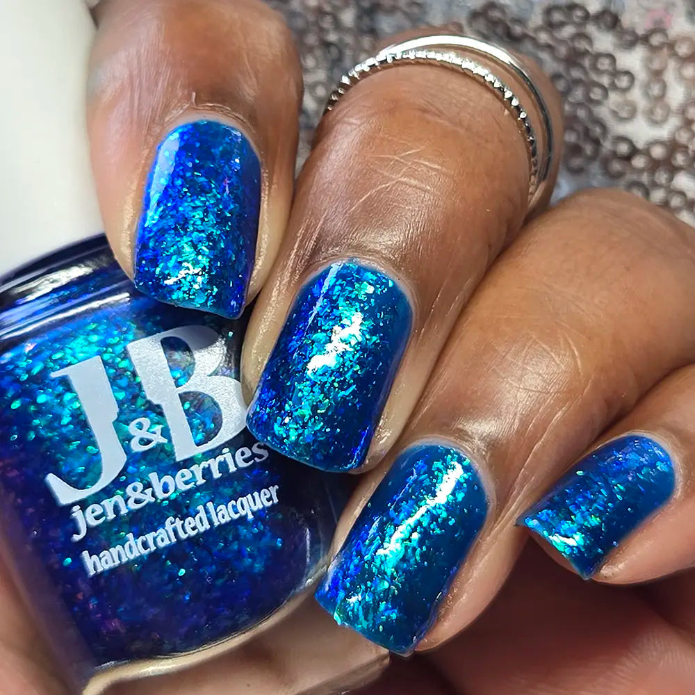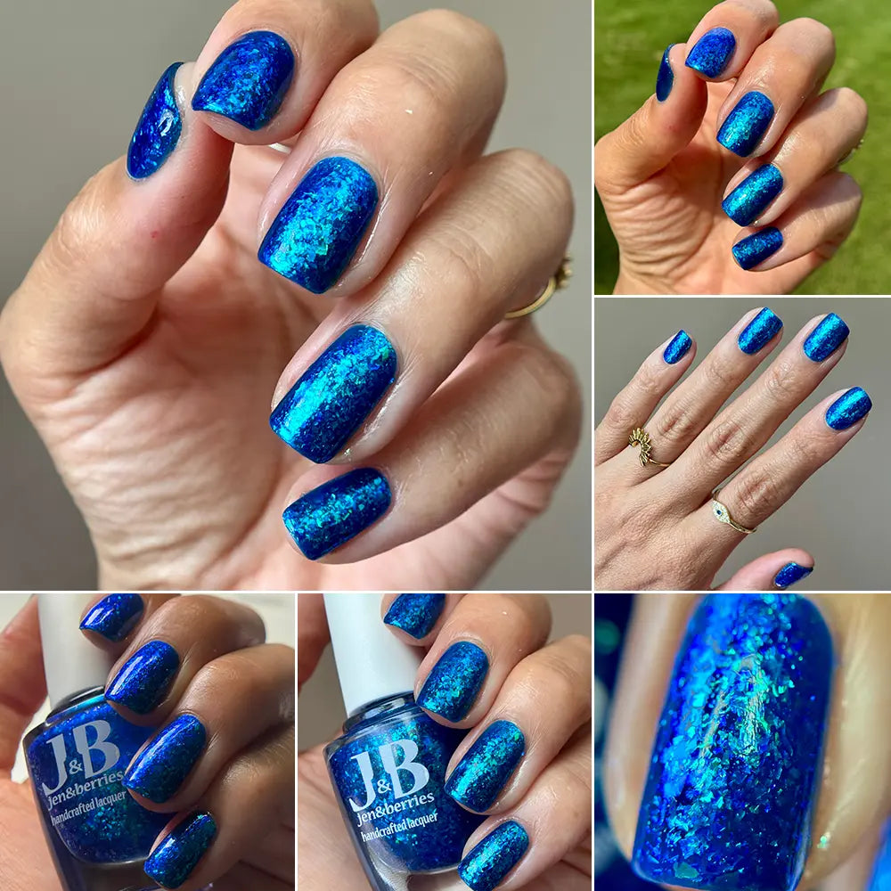 Comb Again?: Inspired by Weyoun, with the polish name as a nod to the actor himself, this polish has a bold, blue, jelly base that's loaded with blue/violet and green/blue/violet shifting iridescent flakes.
