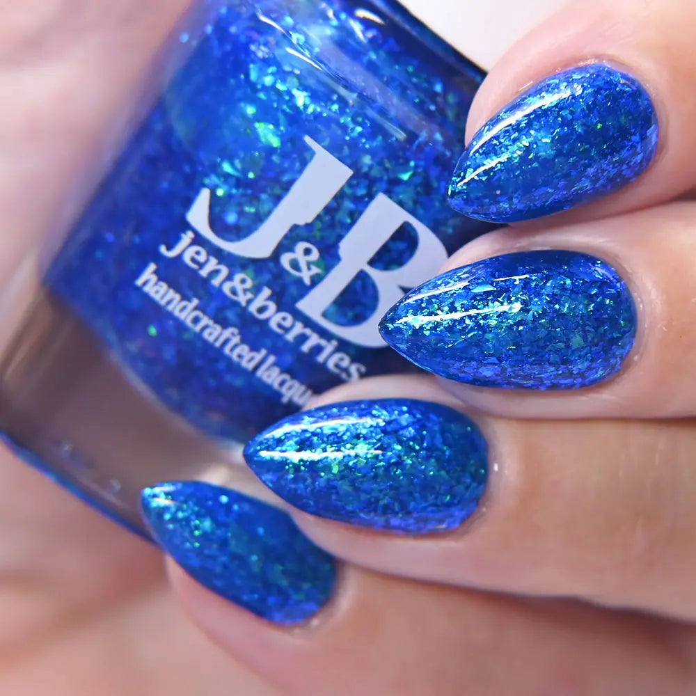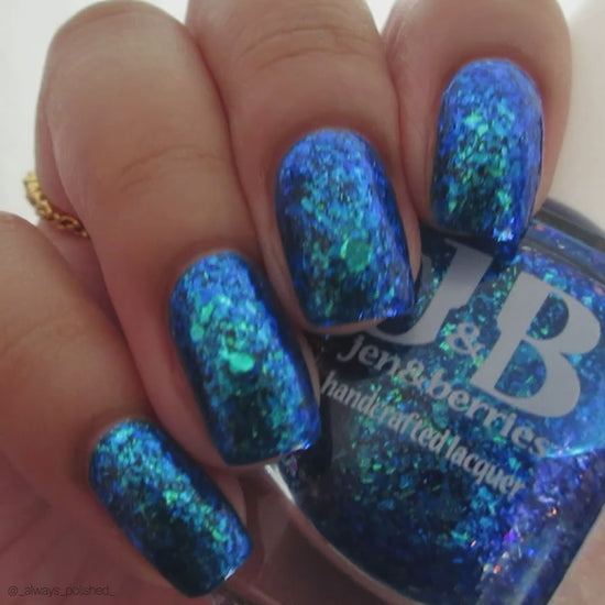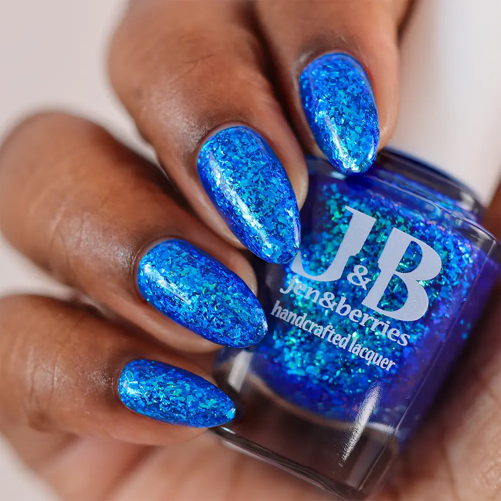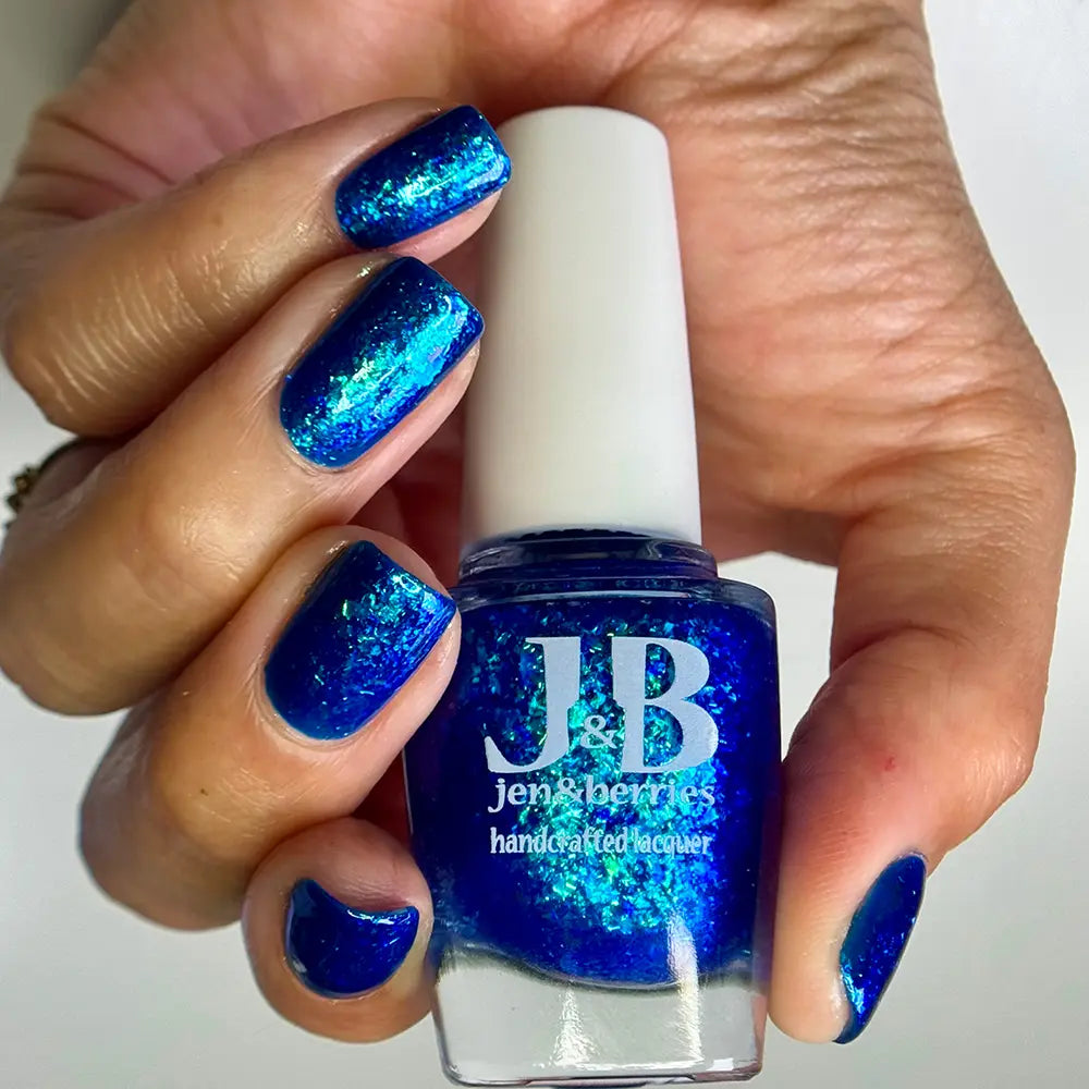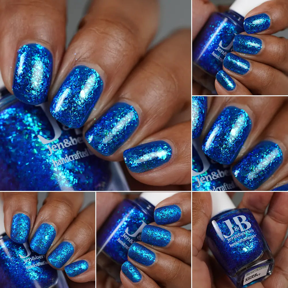 Comb Again?: Inspired by Weyoun, with the polish name as a nod to the actor himself, this polish has a bold, blue, jelly base that's loaded with blue/violet and green/blue/violet shifting iridescent flakes.