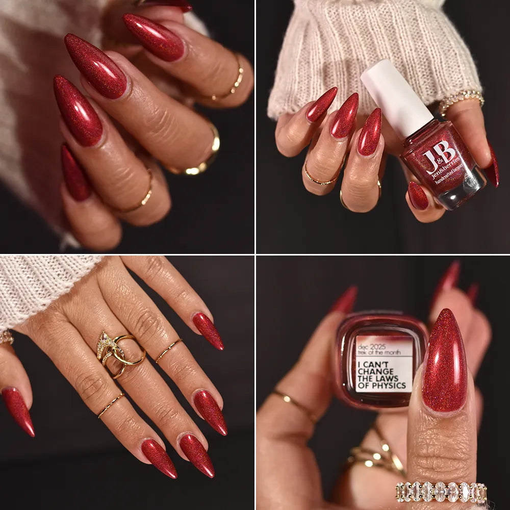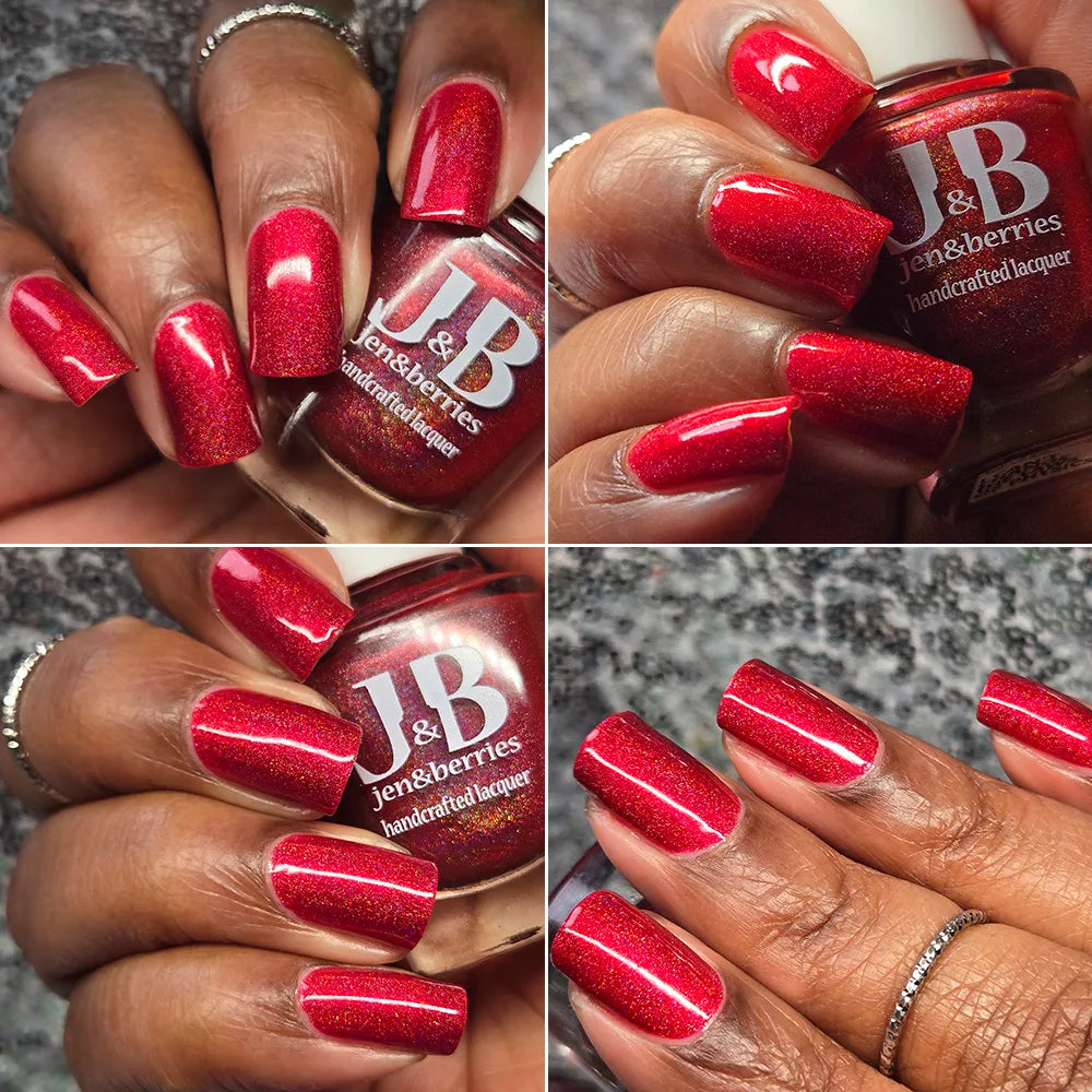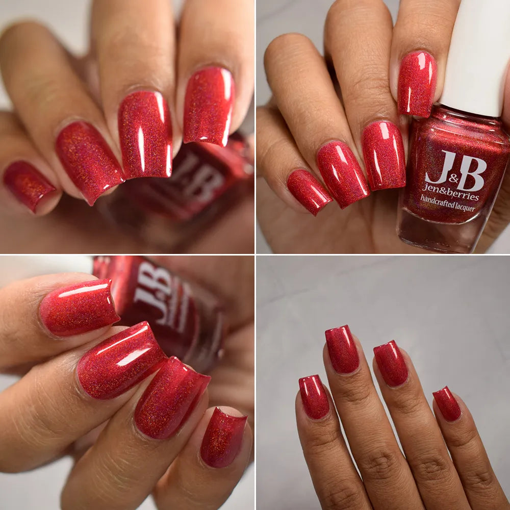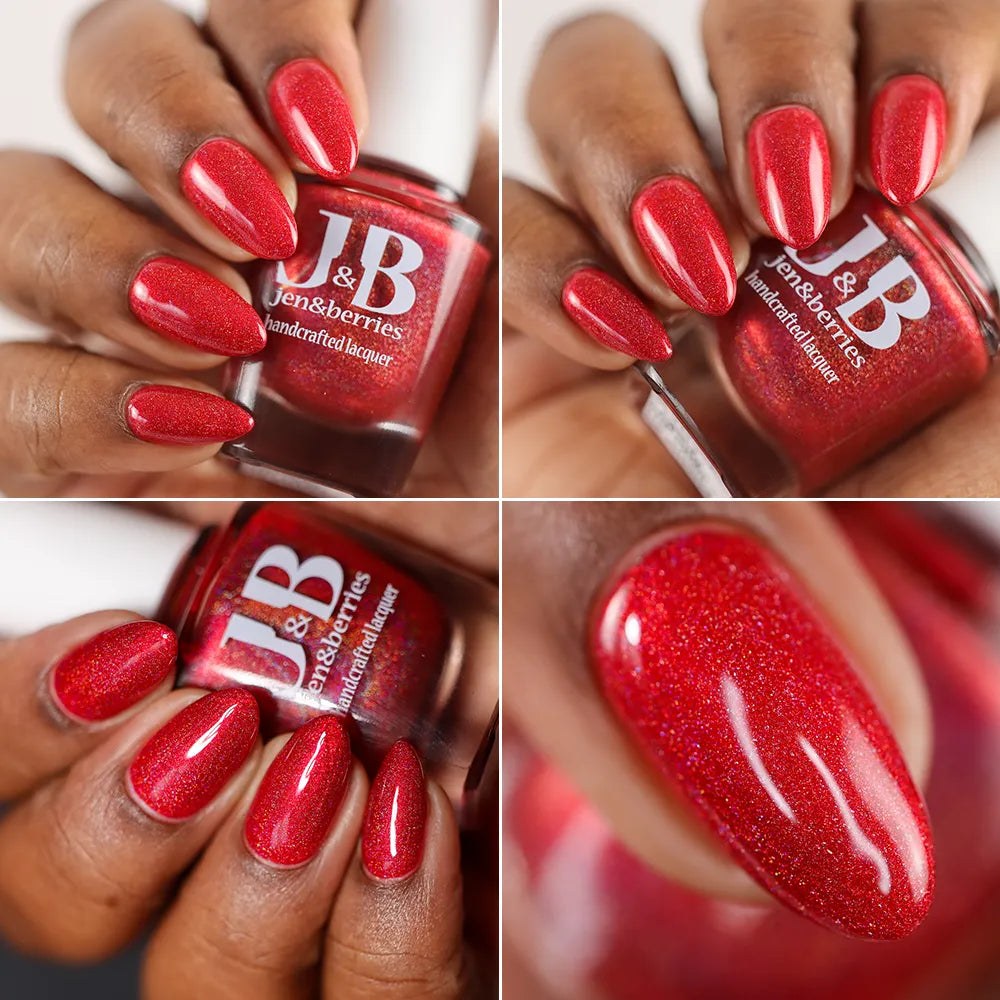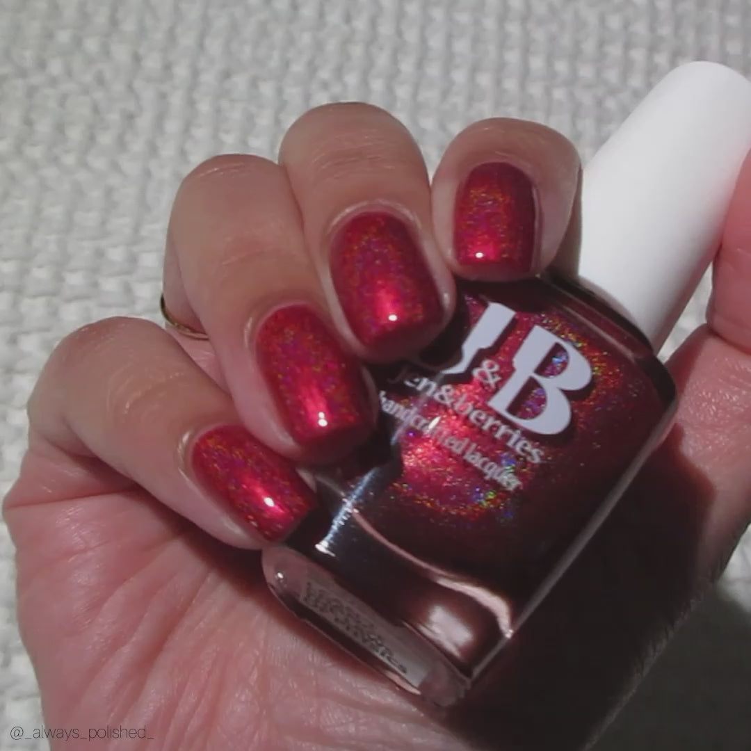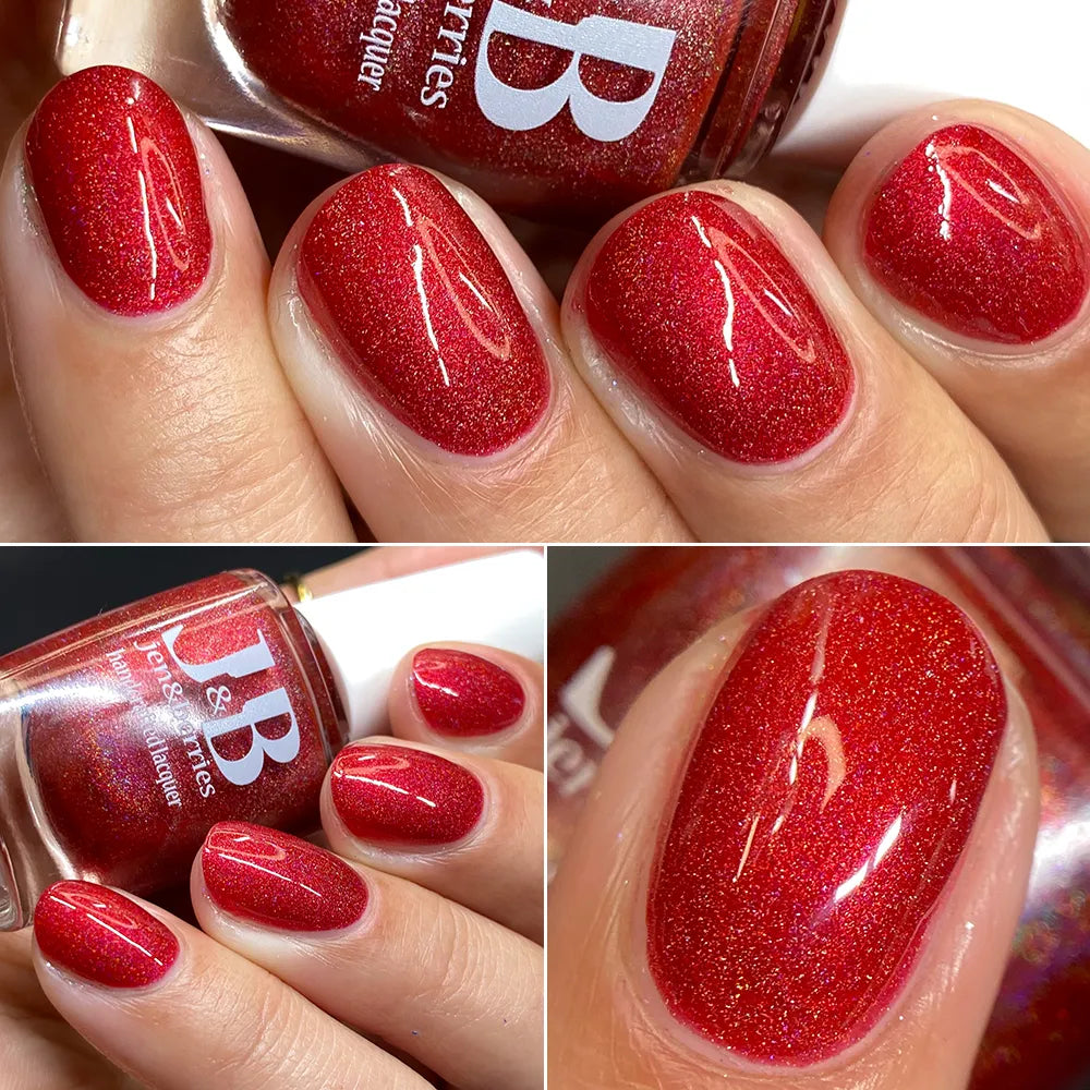 Jen & Berries' nail lacquers are always vegan and cruelty-free. Full-size nail polish bottles are 12.5mL and come with mixing balls and fan brush. 9mL mini bottles with flat brush also available on some products.