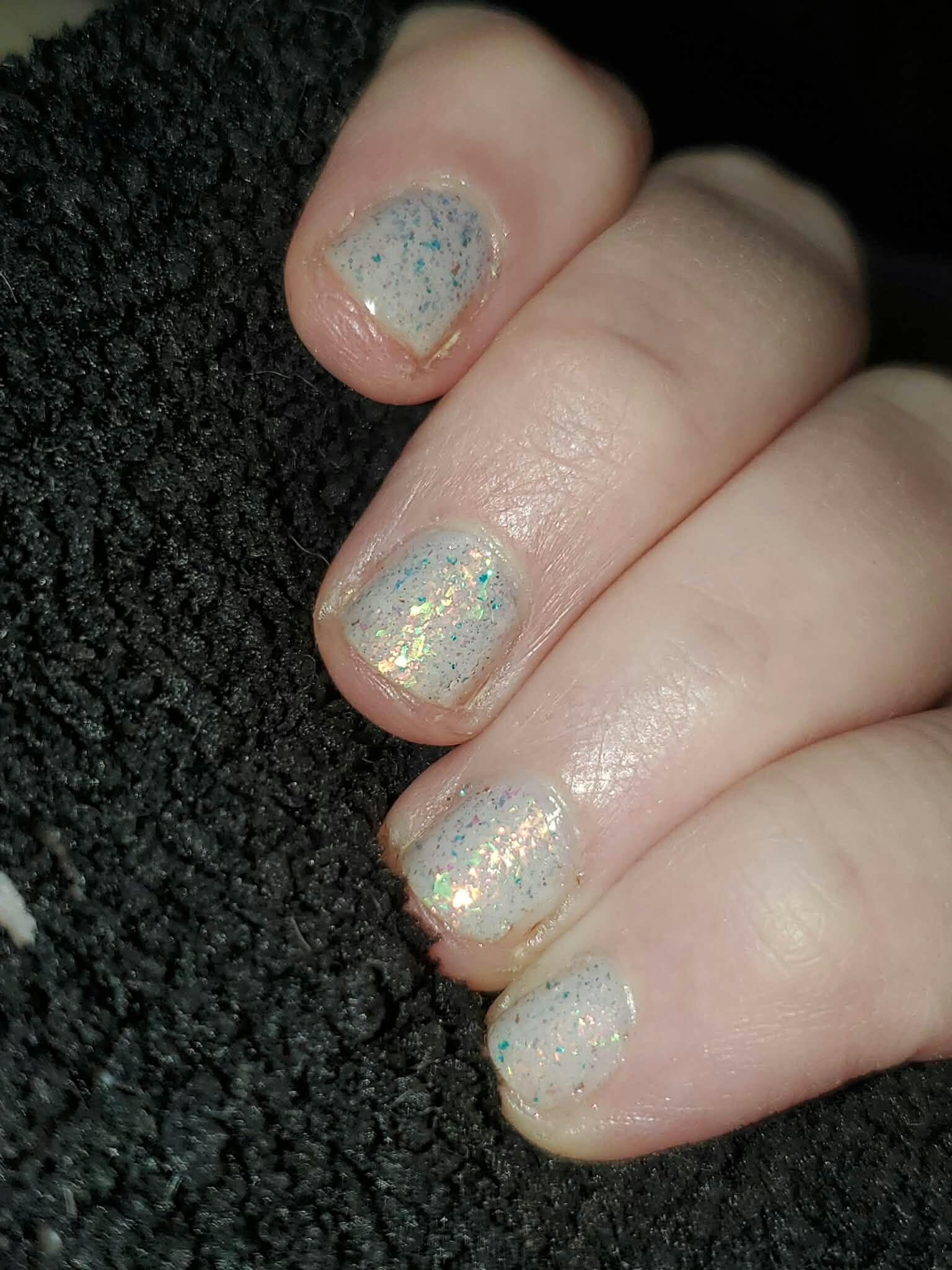 Beautiful polish absolutely packed with flakies! Goes on smooth, easy to work with, and builds opacity well on its own. Also great as a topper over a more opaque base. And honestly way easier to remove than I expected for the number of flakies! One of my first polishes from Jen & Berries and I will definitely be purchasing more!