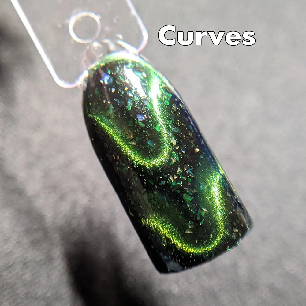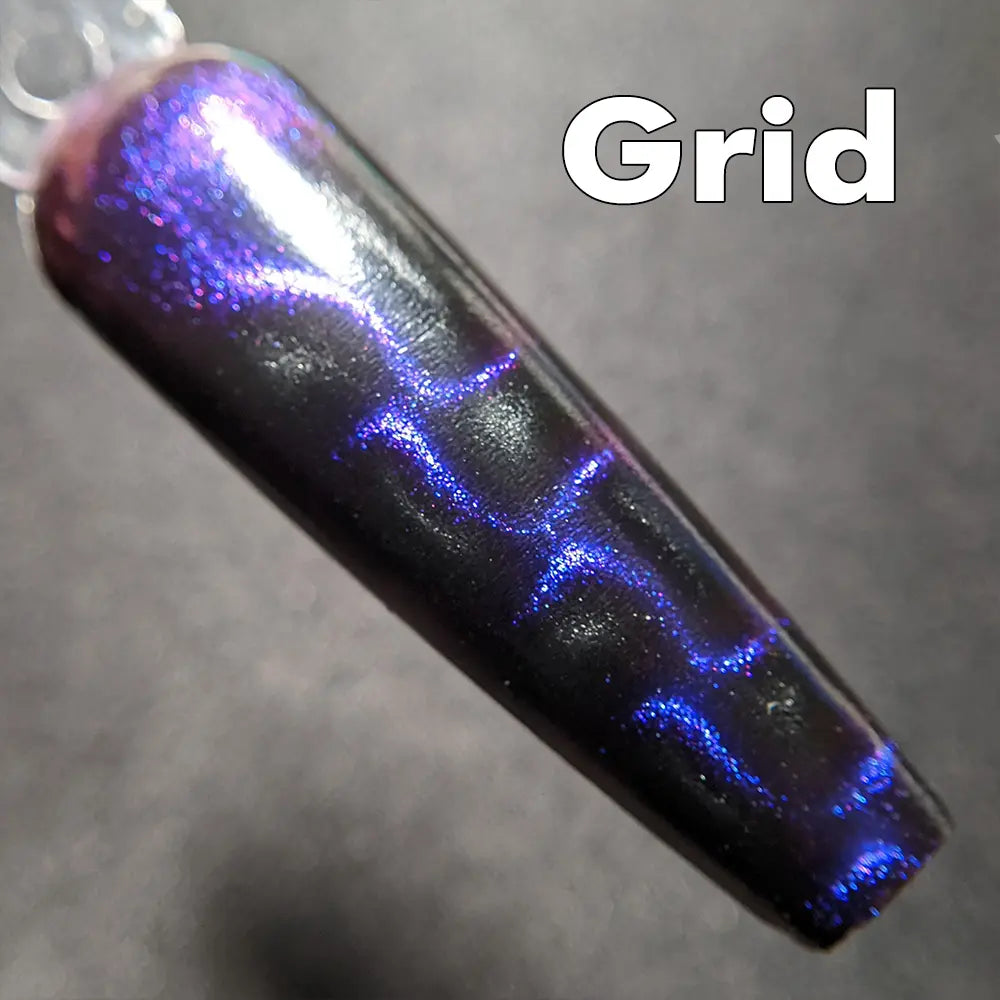 Curves and grid cartridge combo - Curves has stacking curves and grid gives an almost basket weave effect (this one is more prominent when the magnet is closer to the nail. These are both especially impressive on longer nails!