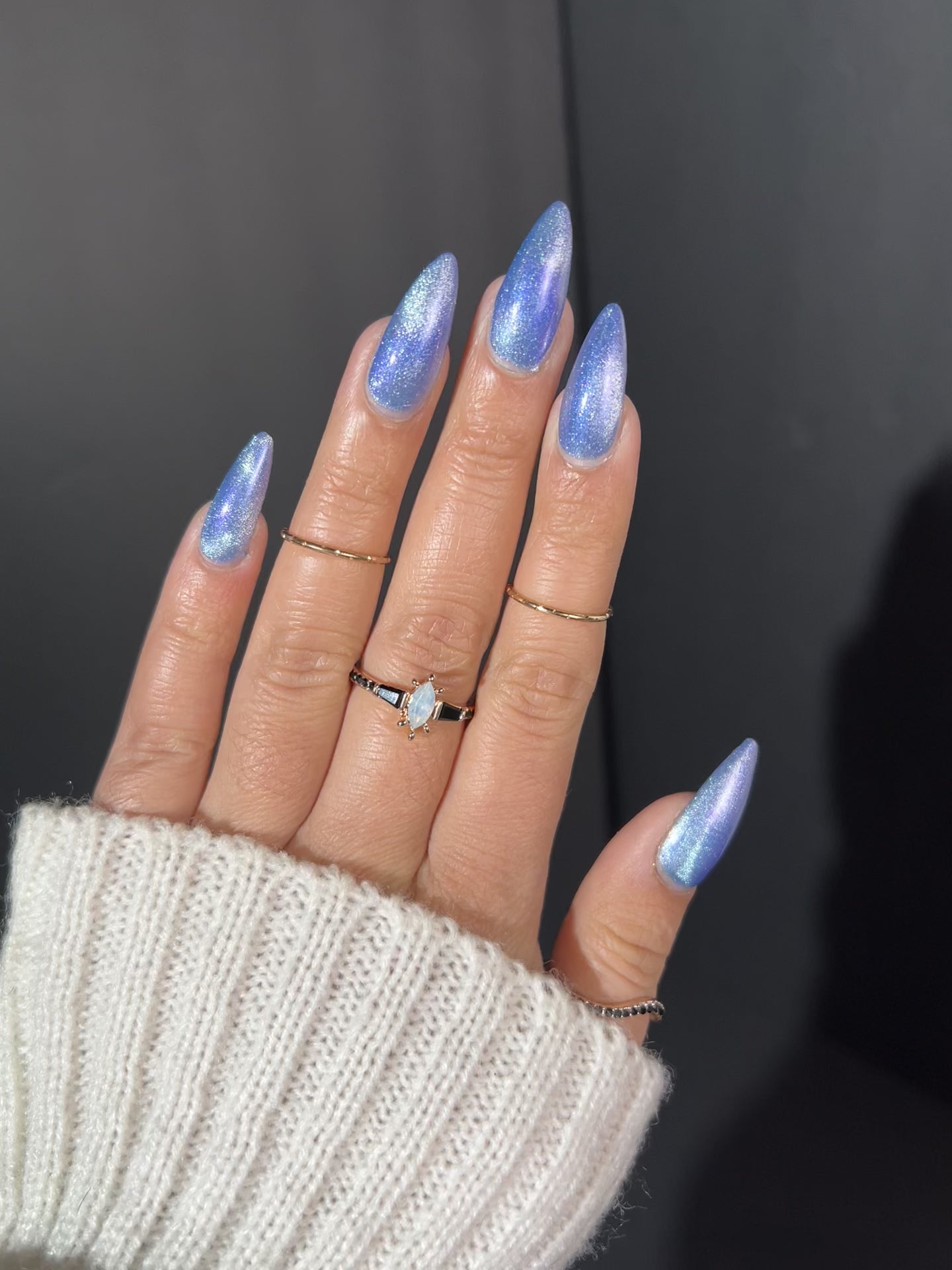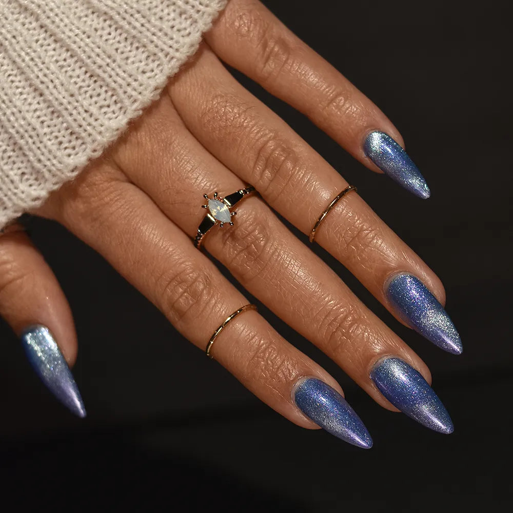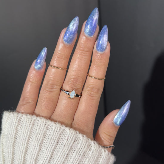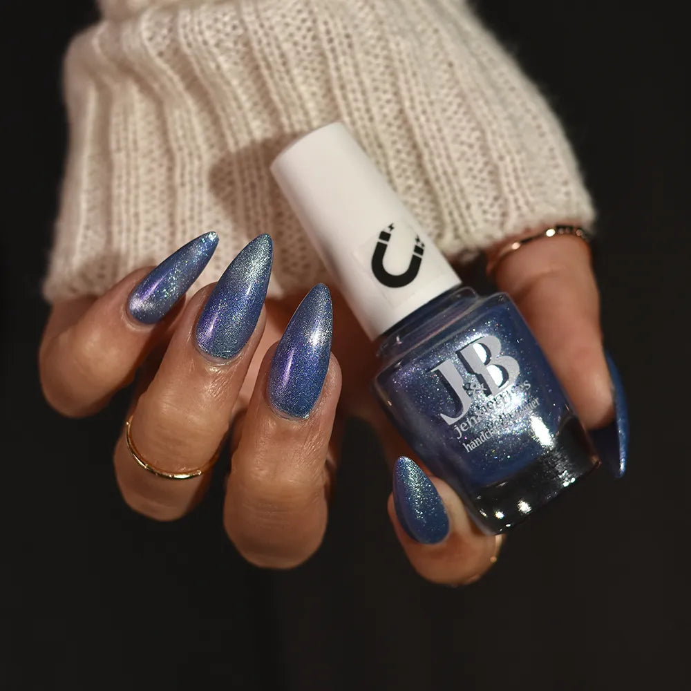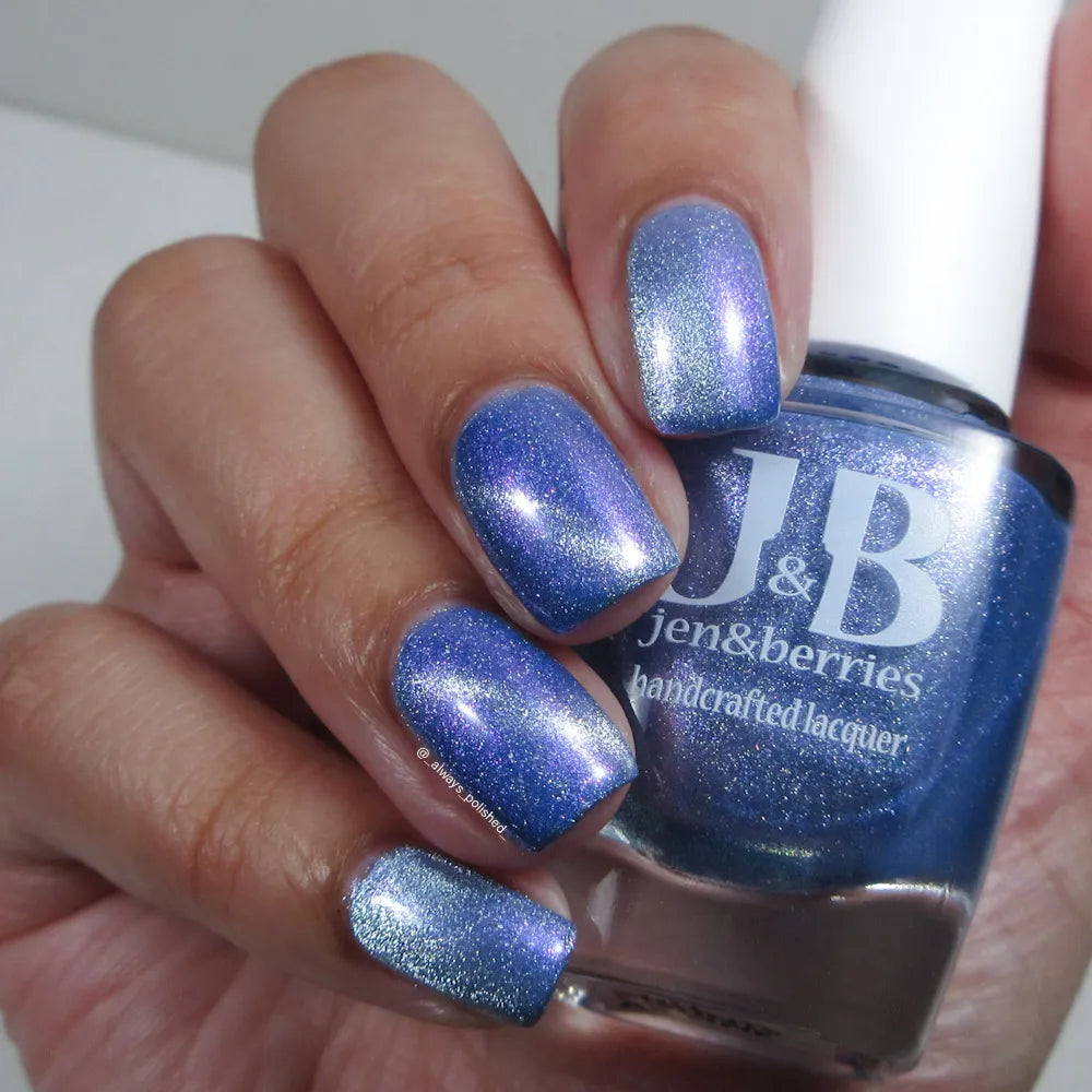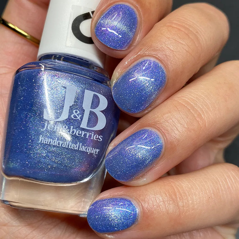 From the Lord of the Rings collab with @lovemesomesparkle, Still Counts as One is a periwinkle crelly nail polish with a purple/pink shifty shimmer, holographic microflakes and silver magnetic shimmer.