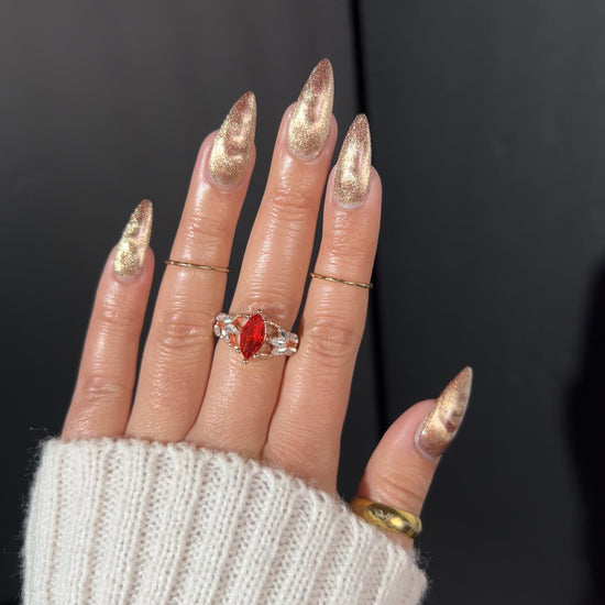 Best in 2-3 medium coats. Hold your nail over a magnet and apply or magnetize after applying. The longer you hold it in place, the more crisp the magnetic line will be for cat eye. Be sure to magnetize after top coat! Or, apply 2-3 coats, and allow to dry slightly, then apply 1 coat of Pole Position to rewet and magnetize just once!