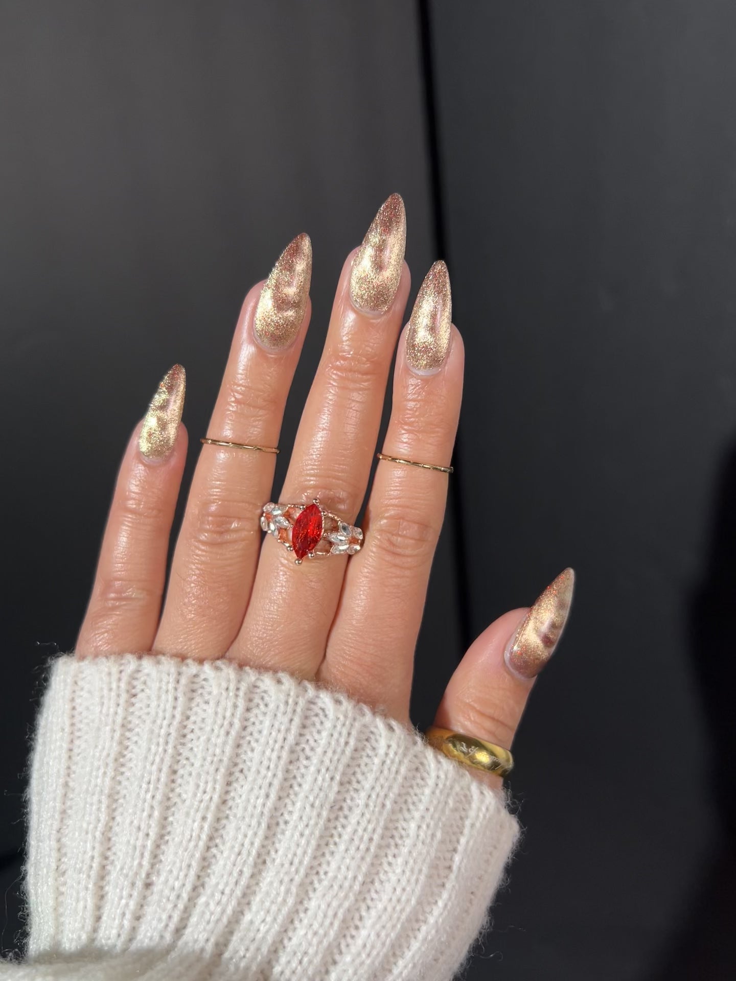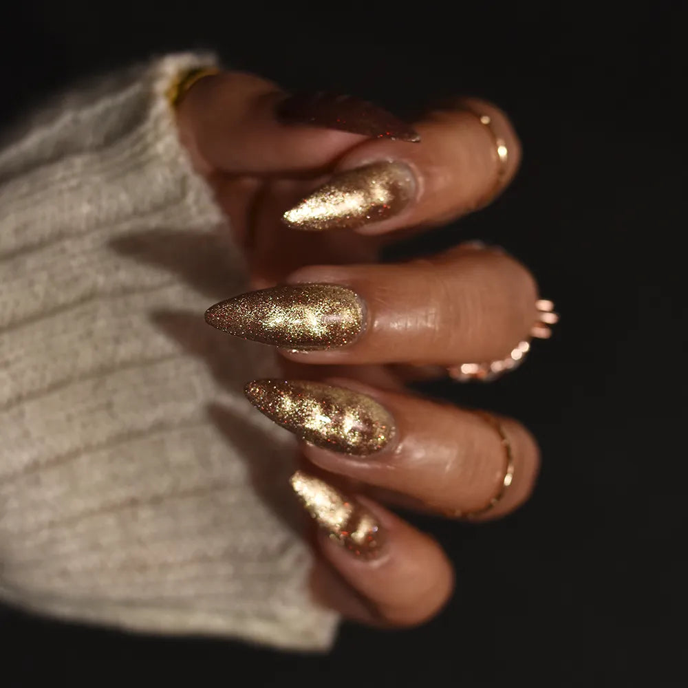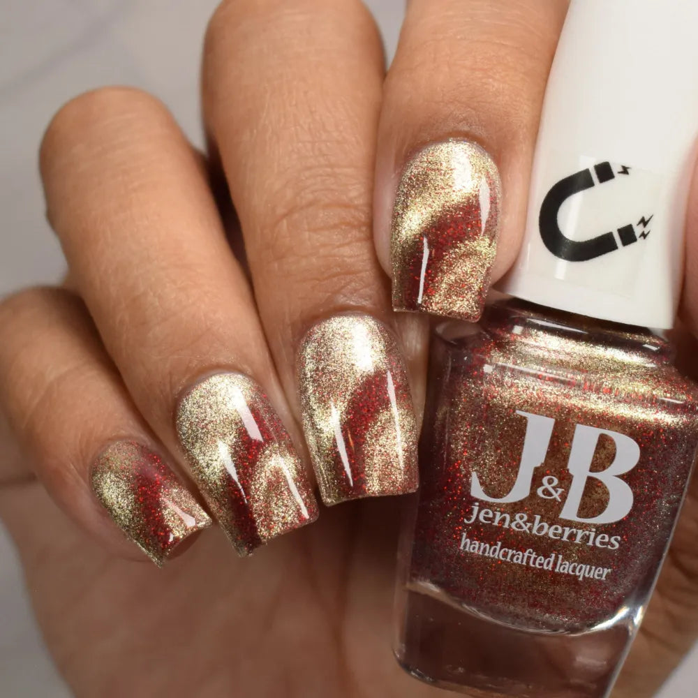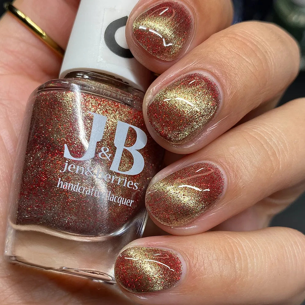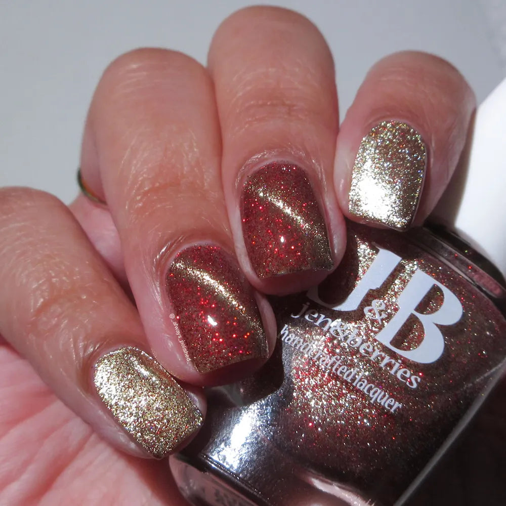 From the Lord of the Rings collab with @lovemesomesparkle, The Beacons are Lit! has a clear base loaded with red holographic microglitter and a gold magnetic shimmer.